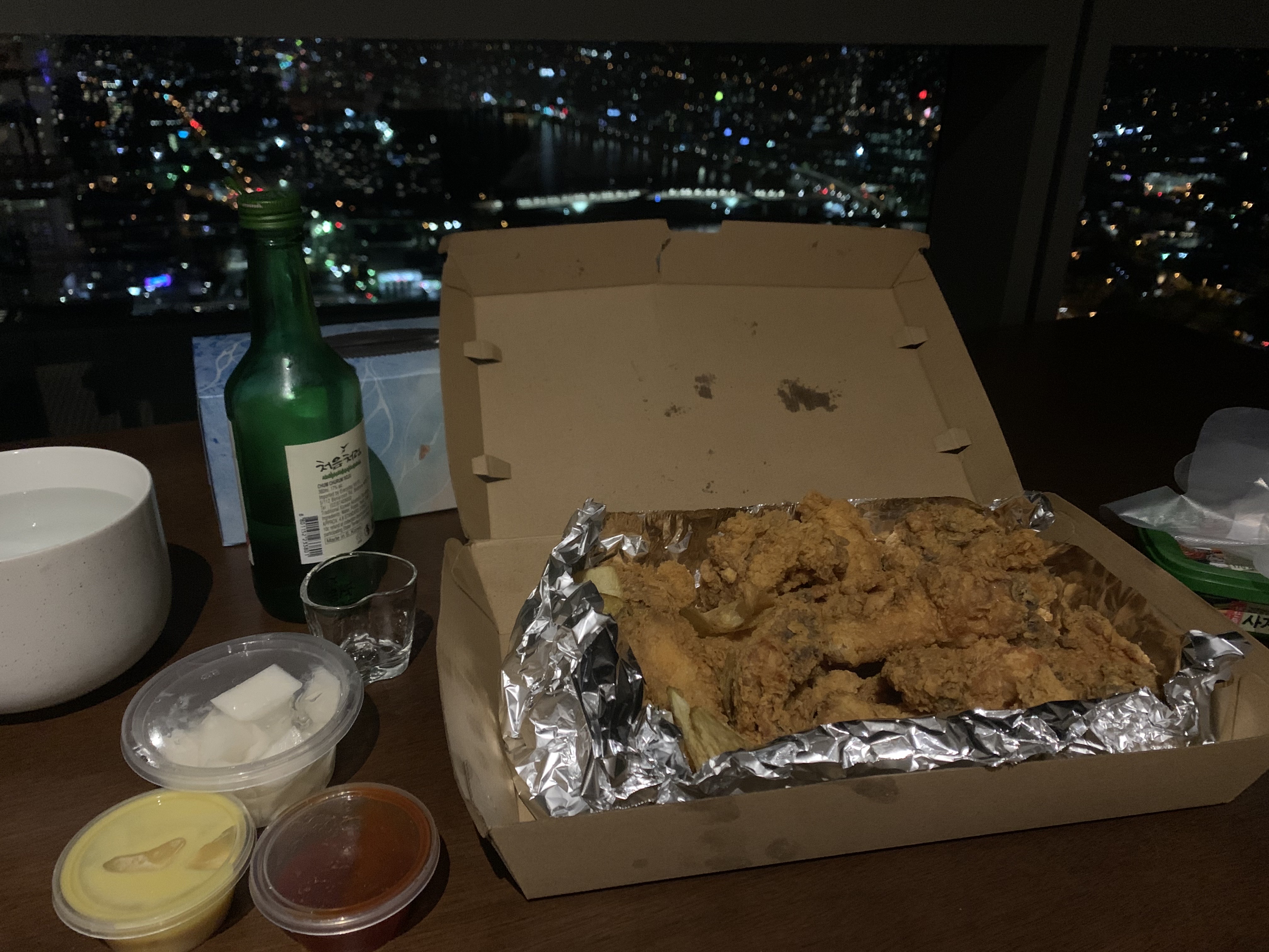 치킨은 생각보다 빨리 왔어요. 28-38분으로 나와있었는데 22분에 도착해서 받아왔답니다. 저희는 아파트 살아서 로비에서 픽업을 해와야 해요. Thomas가 배달을 해주었는데 나와서 기다려준 사람이 우리가 처음이라며 고맙다고 하더군요. 대부분 로비에서 왔다고 전화해야 내려오고 심지어 로비에 왔다고 전화해도 엘베 타고 올라와달라고 하는 사람들도 있다고 하는데 엘베에 카드 찍고 타야 하는 거 아는데 굳이 왜 그러는지 참..